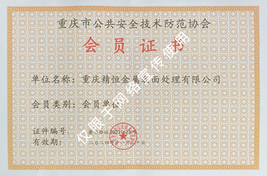 重慶市公共安全技術防范協會會員證書